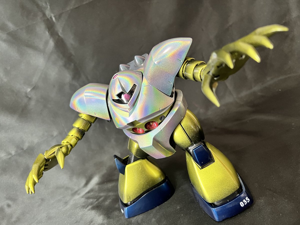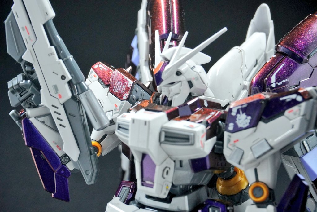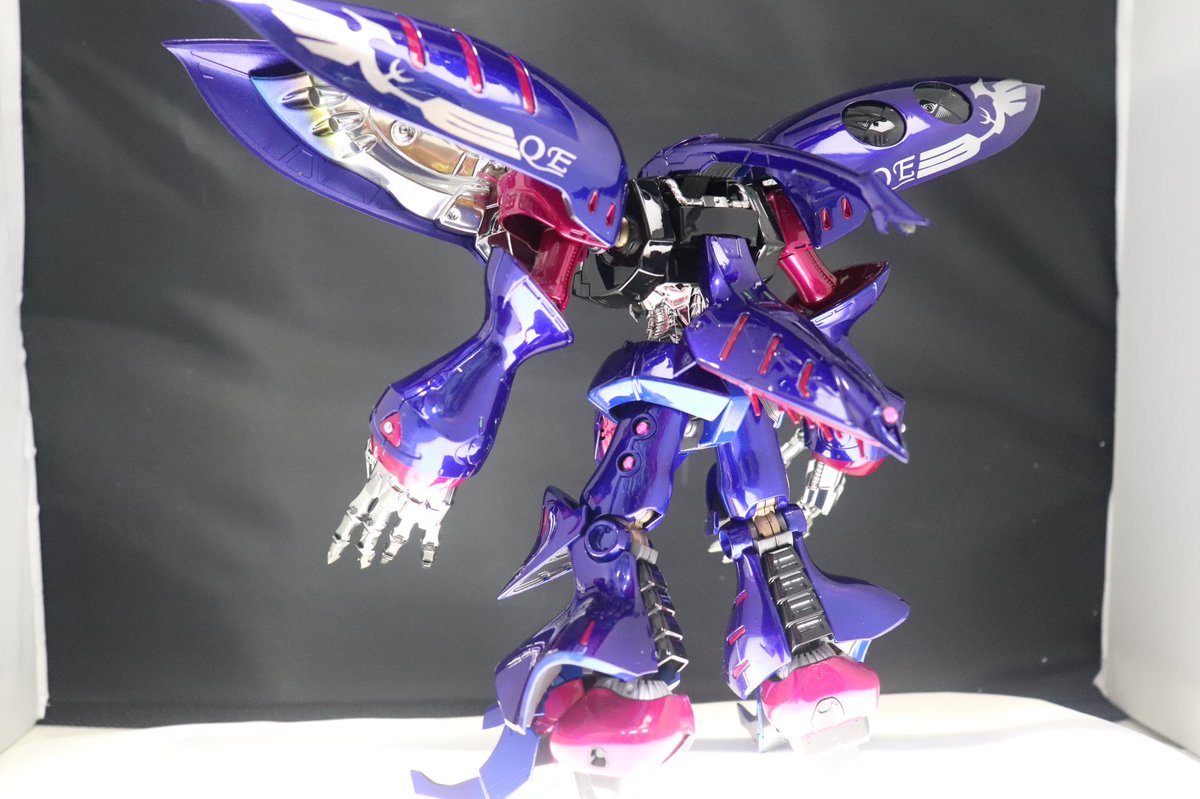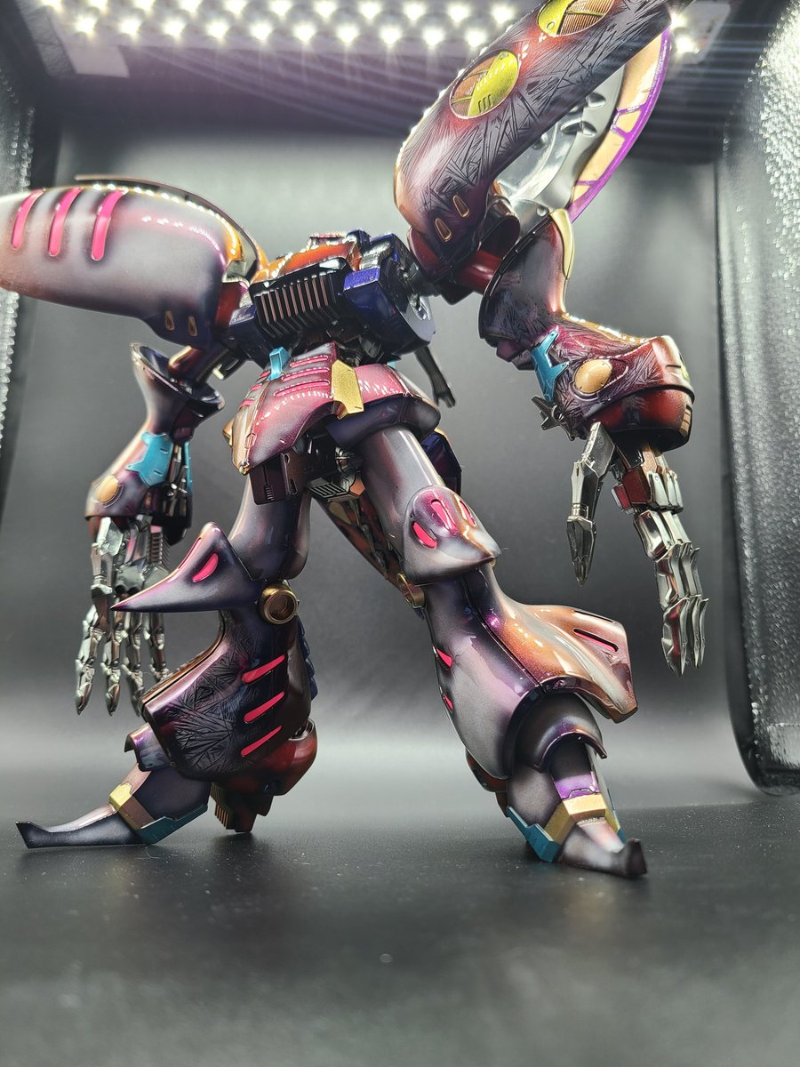 去年から放置してた久々の完成品❗ #キュベレイアンベリール 片足片腕に #showup さんの #レクトラフィニッシュ を施しシャドウを残し全体的に #マジョーラ を吹き付けウレタンフィニッシュしました😁 #ガンプラの画像貼るとRTされると聞いて #gunpla