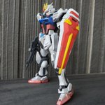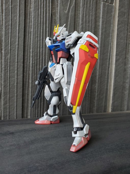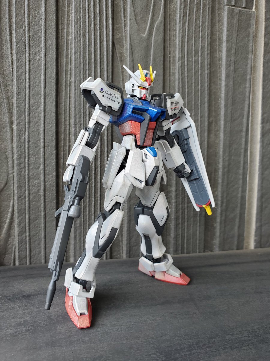 #俺達のEGガンダム 続きまして『フェイズシフトアップ』 EGのストライクガンダムです✨今回はSHOW UPさんの偏光塗料を使ってグラデーション塗装をしてみました✨ビームライフルのスコープを失くした為、フリーダムの物で代用してます😣😵 #ガンプラ #ストライクガンダム #SHOWUP