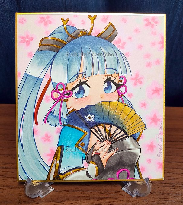 『色紙紹介1/5』 手描きミニ色紙 神里綾華❄️ 明日の #SHT2022春 に持って行きます。 5000円 Hand-drawn shikishi of Kamisato Ayaka❄️ If unsold at the event, online sales start on March 21st. #オイラは非常食じゃないぞ #原神イラスト #GenshinFanart #KamisatoAyaka #神里綾華