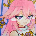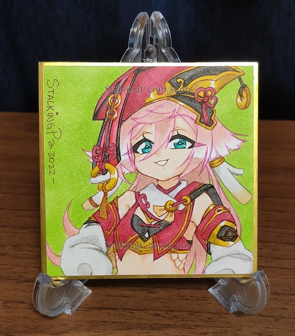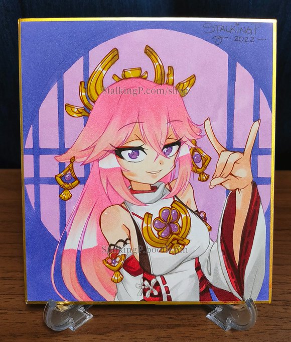 『色紙紹介3/5』 手描きミニ色紙 八重神子⛩️ 明日の #SHT2022春 に持って行きます。 4000円 Hand-drawn shikishi of Yae Miko⛩️ If unsold at the event, online sales start on March 21st. #オイラは非常食じゃないぞ #原神イラスト #GenshinFanart #YaeMiko #八重神子