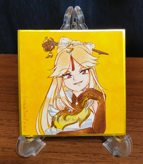 『色紙紹介5/5』 手描き豆色紙 煙緋📚 明日の #SHT2022春 に持って行きます。 2000円 Hand-drawn shikishi of Yanfei📚 If unsold at the event, online sales start on March 21st. #オイラは非常食じゃないぞ #原神イラスト #GenshinFanart #Yanfei #煙緋
