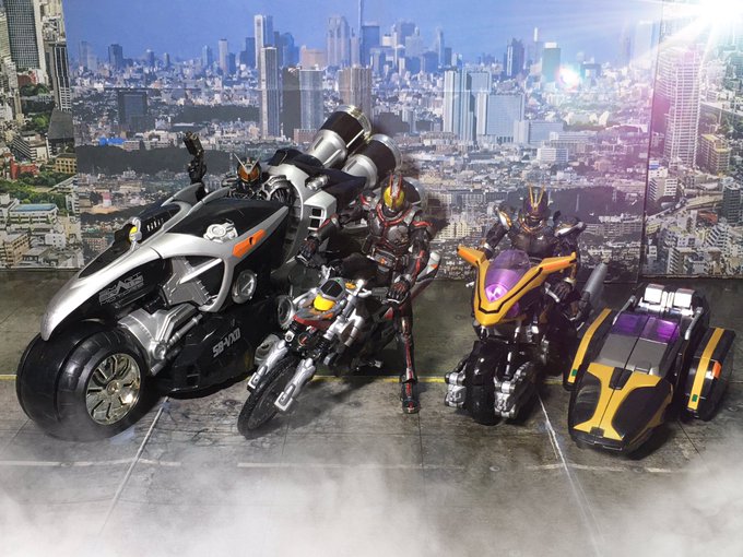 #おもちゃ撮影会 テーマ『おもちゃ フリー』 仮面ライダー555!ファイズ、カイザ、デルタが勢揃い!(←フィギュアはS.I.C.でバイクはS-RHF ) #仮面ライダー555 #仮面ライダーファイズ #仮面ライダーカイザ #仮面ライダーデルタ #SIC #オモ写