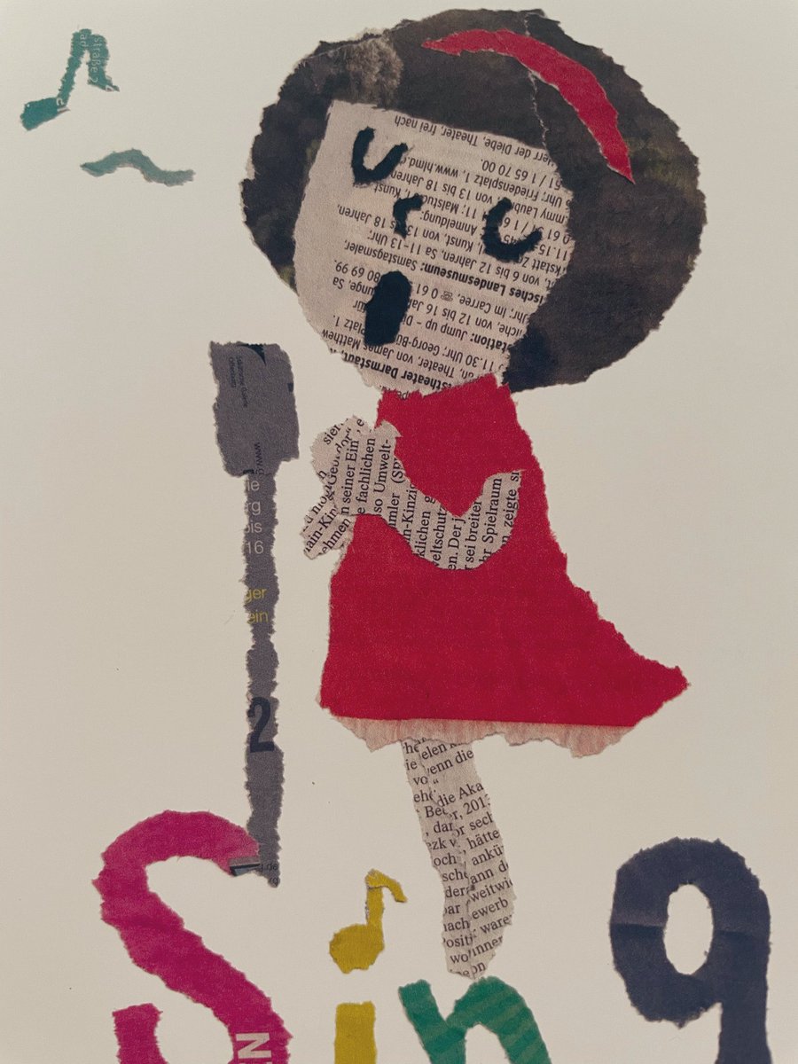 ちぎり絵で作った作品です。 「Sing-歌う」 (紙は全て新聞紙です) #イラスト #イラスト好きな人とつながりたい #歌う #紙作品 #オリジナルイラスト #illustration #paperart #sing