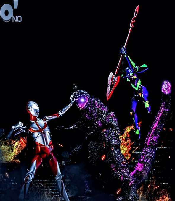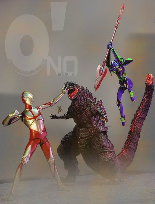 ざっくり合成と編集をして完成へ🎞️ ちなみにスモークっぽいのも全部イラスト🖌️ #オモ写 #Toyphotography #のぼふぉとオフショット #SJHU #GODZILLA #エヴァ #ULTRAMAN #仮面ライダー