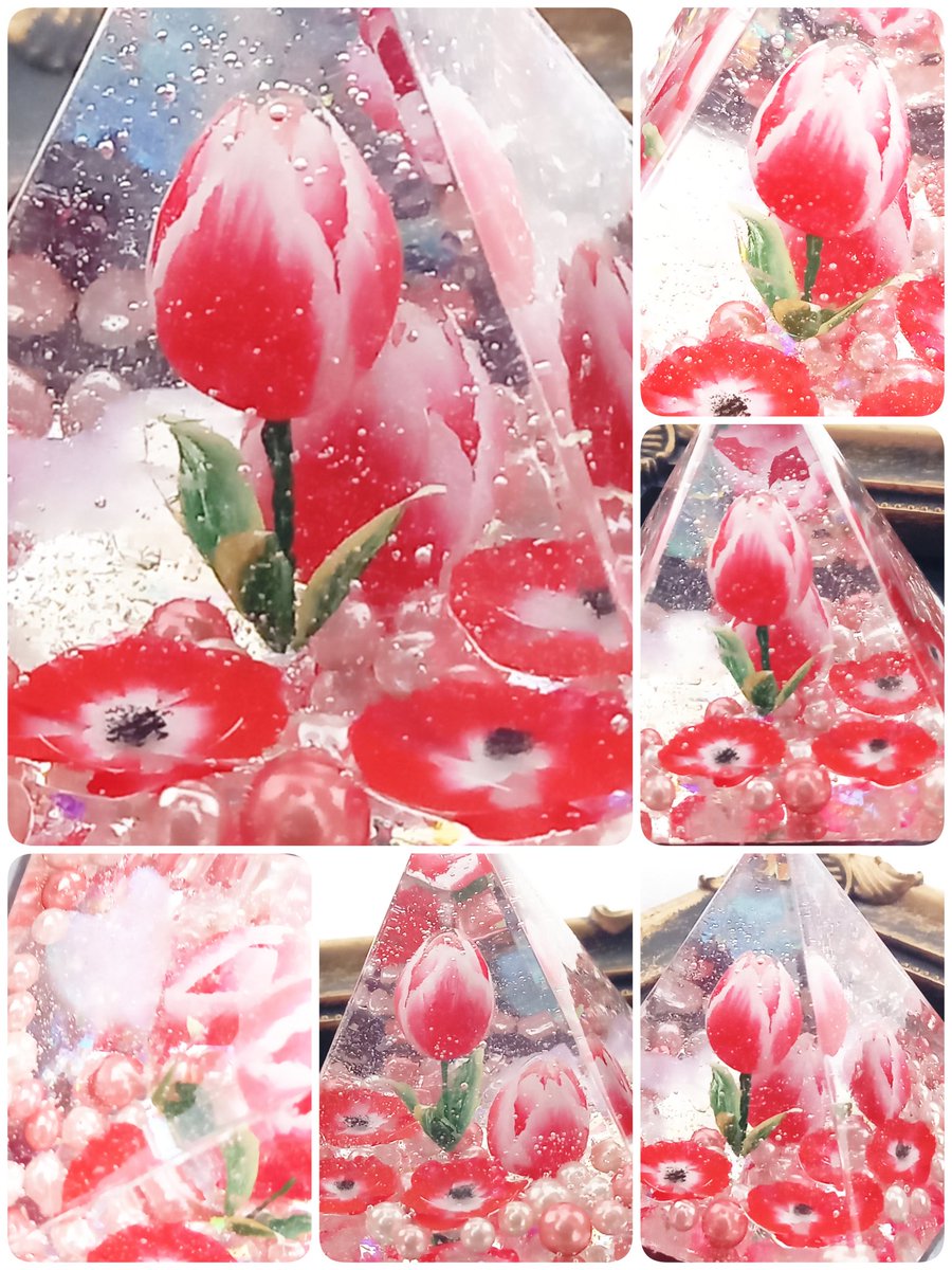 コーティング出来ました🌷 か、か、かわいいっっ❤( *´艸`) 色々な角度からとってみました🌷 ハートも❤ #SK本舗アンバサダー #ミラクルレジンで作ってみた twitter.com/MinaArt3/statu…