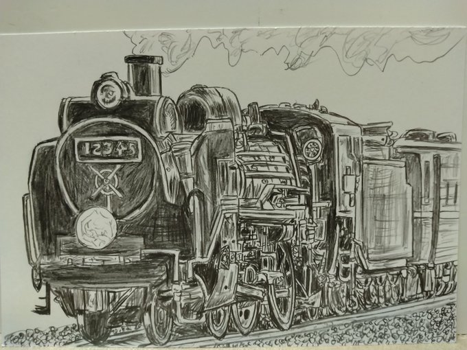 112シュールな蒸気機関車 マニアックな内容になってしまった・・ #漫画が読めるハッシュタグ #絵描きさんと繋がりたい #イラスト好きな人と繋がりたい #みんなで楽しむTwitter展覧会 #4コママンガ #4コマ漫画 #蒸気機関車 #鉄筋 #D15 #SL
