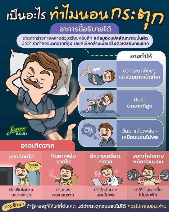 เคยไหมครับ? ดึกๆ กำลังเคลิ้มหลับ ร่างกายเริ่มผ่อนคลาย แล้วจู่ๆ ก็รู้สึกเหมือนโดนกระชากขา! ตัวกระตุกขึ้นมาซะงั้น เอ๋.. นี่เราเป็นอะไรกันเนี่ย! ถ้าใครเคยเจออาการแบบนี้บ่อยๆ อาการนี้มีที่มานะค้าบ #sleep #HealthyLiving