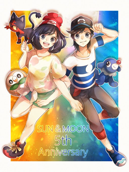 5 years of Alola. 5 years of #PokemonSunMoon. Here's an illustration of Elio and Selene to celebrate! #Pokemon25 #ヨウ #ミヅキ #ポケモンSM5周年 #SM5周年 #ポケモンSM