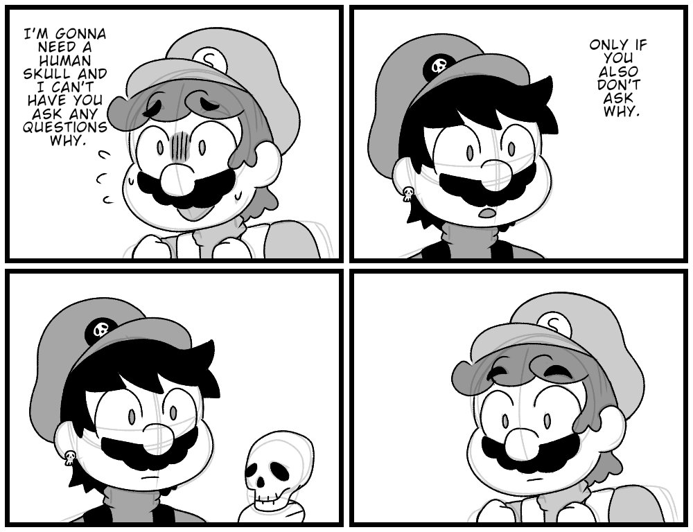 I can't stop drawing these two 😭 but yeah he just kinda had a skull in the christmas special to look cool, so I guess this is canonical enough. Also yes, he has several, don't ask. #smg4 #smg4fanart #smg3 #smg34 #smg3fanart