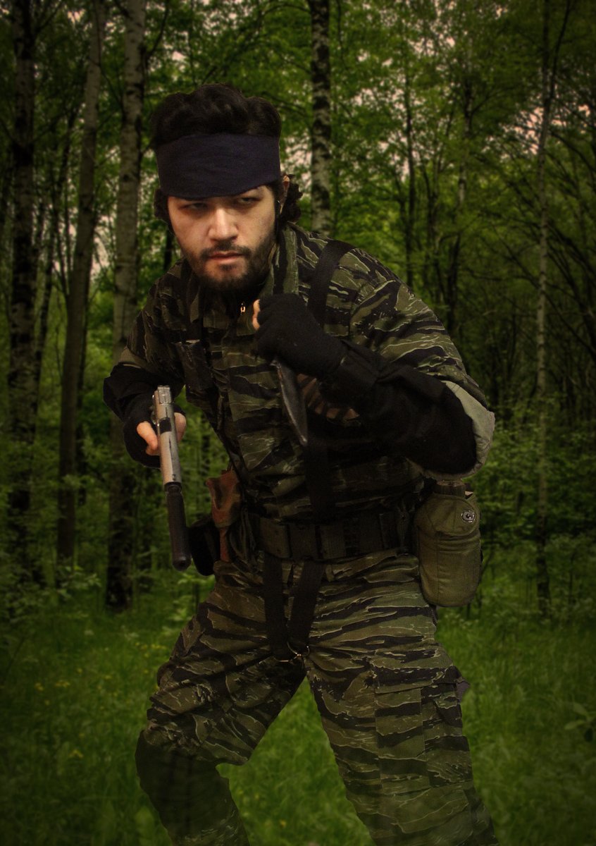 My 2021 in terms of cosplay was mostly upgrading past ones. So I'm glad I've finally put together some decent shots for my Tiger camo Naked Snake cosplay this year. - #NakedSnake #BigBoss #MetalGearSolid #MGS #WhatAThrill #SnakeEater #Cosplay #CosplayersUnder1k