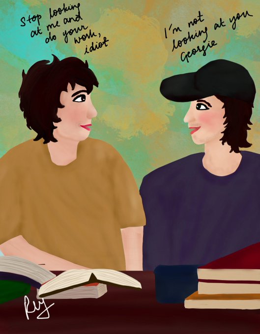 study date (but with less studying and more date ;) #SNFMARCH day 25- college AU #georgenotfoundfanart #sapnapfanart #snffanart