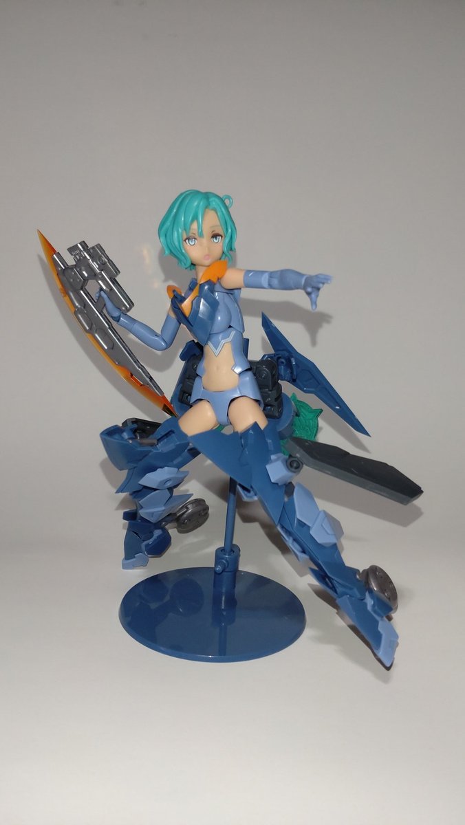 #メガミデバイス #SOLロードランナー 改、完成です。 SOLフルアーマーから防御を捨て、機動力向上のため、可変翼とバランサーとして全身にウイングアーマーを分散配置。 ウイングアーマーは切りつけにも使用できる。 武装はブレードライフル、背面ラックにハンドガン×2、レーザーソード×2。