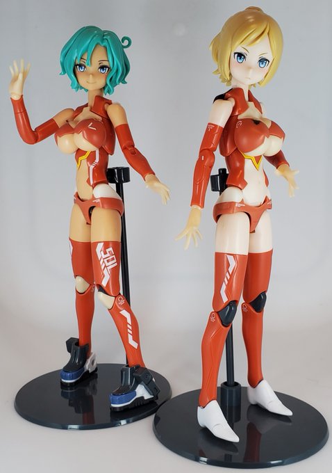 ほーちゃん、ろーちゃん、素体完成です。 クールビューティーなほーちゃんと、スポーティーツンデレなろーちゃん、ってとこでしょうか。 あまりパーツで作ったろーちゃんのシューズがなかなか良い感じ。 #メガミデバイス #SOLホーネット #SOLロードランナー