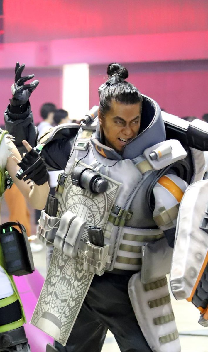 RAGE APEX幕張メッセオフラインイベント (コスプレ) ジブラルタルの…… ←赤アーマー と 肉→ 📸:@dad61505154 #RAGE_ApexLegends #SOLOMONSTUDIO