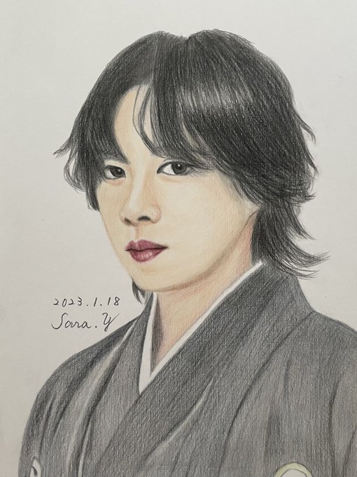 Happy Birthday‼️SOTA🎂 🎉🎊💐👏✨✨ お正月📸の立ち姿には、勝手に『~ぜよ』的な⁉️坂本○馬味⁉️を感じてしまったぜよ😆❤️ 22歳も心身共に健やかであれ😌✨ #SOTA #BEFIRST #HAPPYSOTADAY_2023 #CoreSOTAedhiii_BD23 #SOTA22nd_B_day #BEFIRSTファンアート #色鉛筆画