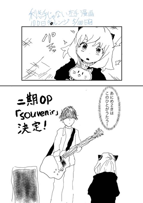 #SPY_FAMILY #スパイファミリー #BUMPOFCHICKEN #SOUVENIR #100日チャレンジ 利き手じゃない左手で毎日漫画を描いていく。5日目。SPY×FAMILYの2期のopがBUMP OF CHICKENなの熱すぎる。どっちもすき。