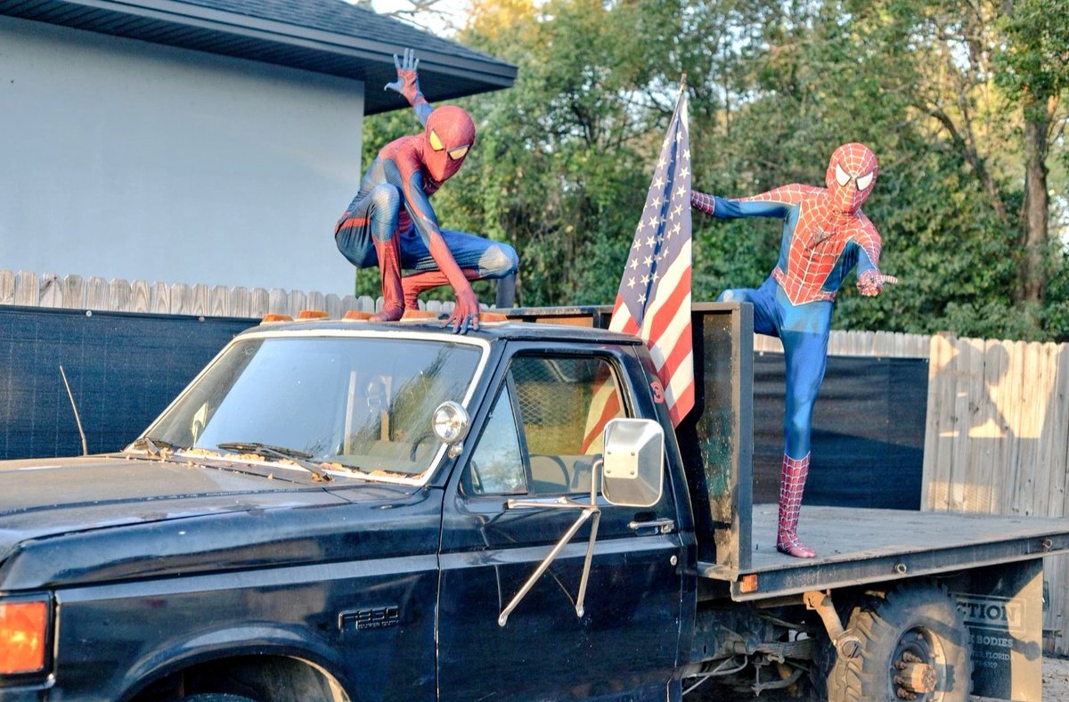 Cosplaying... "It's what we do." We've officially suit up in our first Spidey suits together.🕸️🤟 Featuring @gabejmatamoros as Tobey Maguire's Spider-Man (Peter 2) And Me as Andrew Garfield's Amazing Spider-Man (Peter 3) #SpiderManNoWayHome #TobeyMaguire #AndrewGarfield #Cosplay