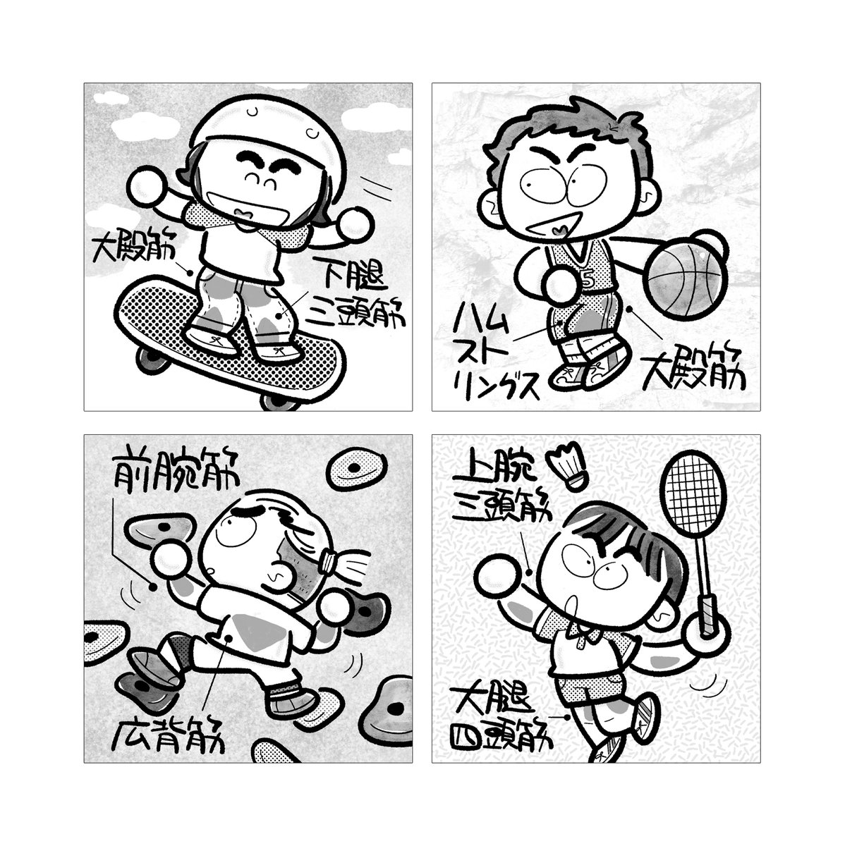 🏀 【お仕事】 2022年12月19日発売の「レディース アロー&スケルトン2月号 (コスミック出版様)」にて、各スポーツ(バスケットボール・ボルダリング・スケートボード・バドミントン)で鍛えられる筋肉のイラストを描かせていただきました。 tmblr.co/Zb0_NZd89Z-RKy… #イラスト #sports