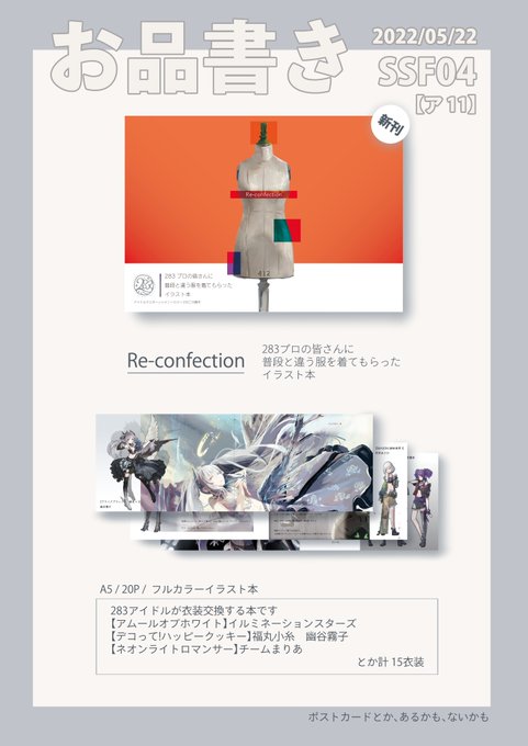 おはようございましたー。準備してたら時間やばいw そんなわけで本日開催のSSF04 イ-11「BLIZZARD GIG」にてサークル参加しますー。ウン年ぶりの新刊は凛世ちゃんメインのゆるいギャグ本です!よろしくお願い致します(*´▽`*) 新刊詳細は↓へどうぞ~ #pixiv pixiv.net/artworks/98509… #SSF04