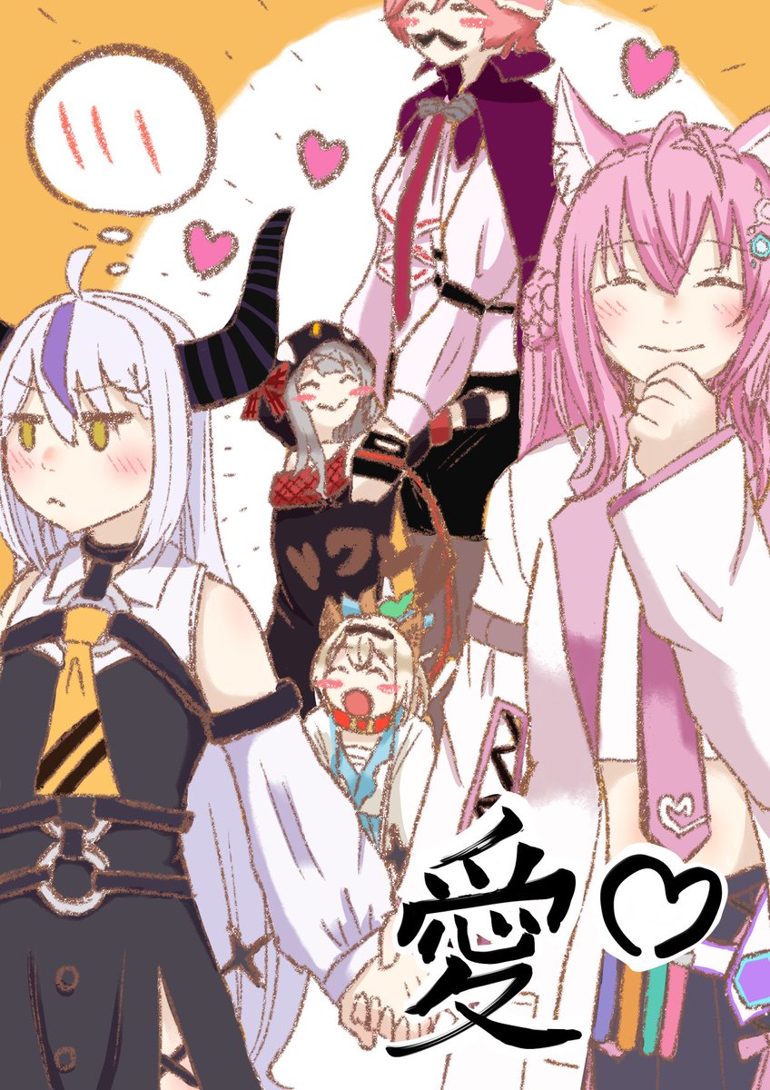 昨日のholox配信より ラプ様のお題、 「吾輩とこよりの純情ラブロマンスとみまもるルイママさかまたパパ犬のいろは」を描いてみた。 #SSholoX #laplus_artdesu 配信めっちゃ面白かったです。デカすぎるルイ姉が好き。