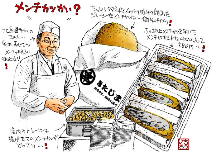 元水泳日本代表の北島康介の実家『北島商店』が幕を閉じたそうです(>_<)onl.la/ywQiyWx 作家の森沢明夫大先生と、朝日マリオンで連載していたイラストルポ『東京トカイナカ探検隊』onl.la/e21gFPWの記念すべき第一話で訪れた店舗だけに、至極残念! #STOPインボイス #イラスト