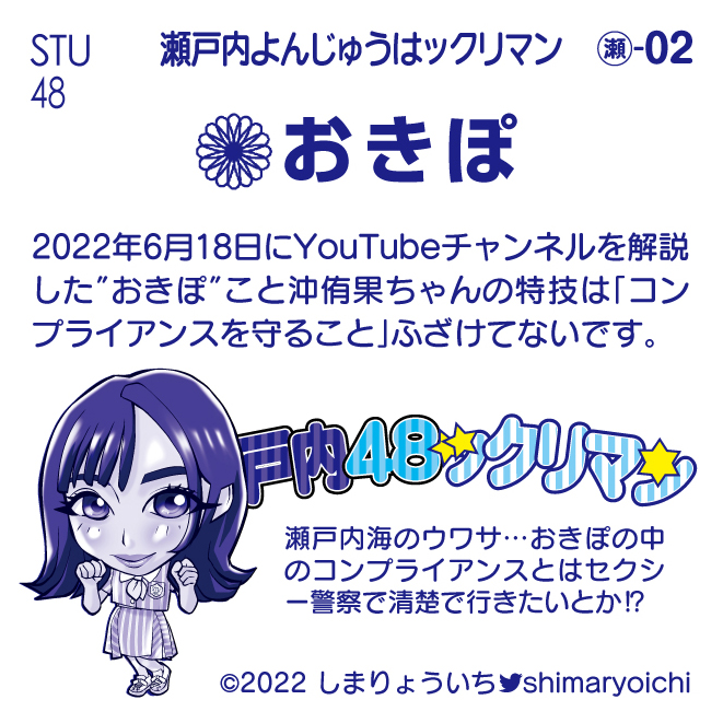 おはようございます。 #STU48 #沖侑果 さんを描きました。 情報はYouTube「おきちゃんねる」から。 髪や目の色はサイリウムカラー紫✕紫で。 #瀬戸内48ックリマン #坂道46ックリマン twitter.com/shimaryoichi/s…