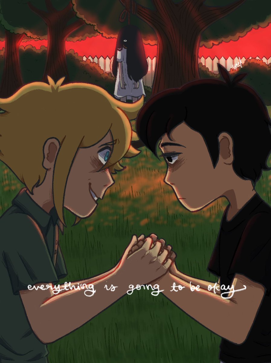 // hanging , omori spoilers . . . . . . . . . . . . . . . "don't worry." #OMORI #OMORIFANART #omoriart #sunnyomori #basilomori #ArtistOnTwitter