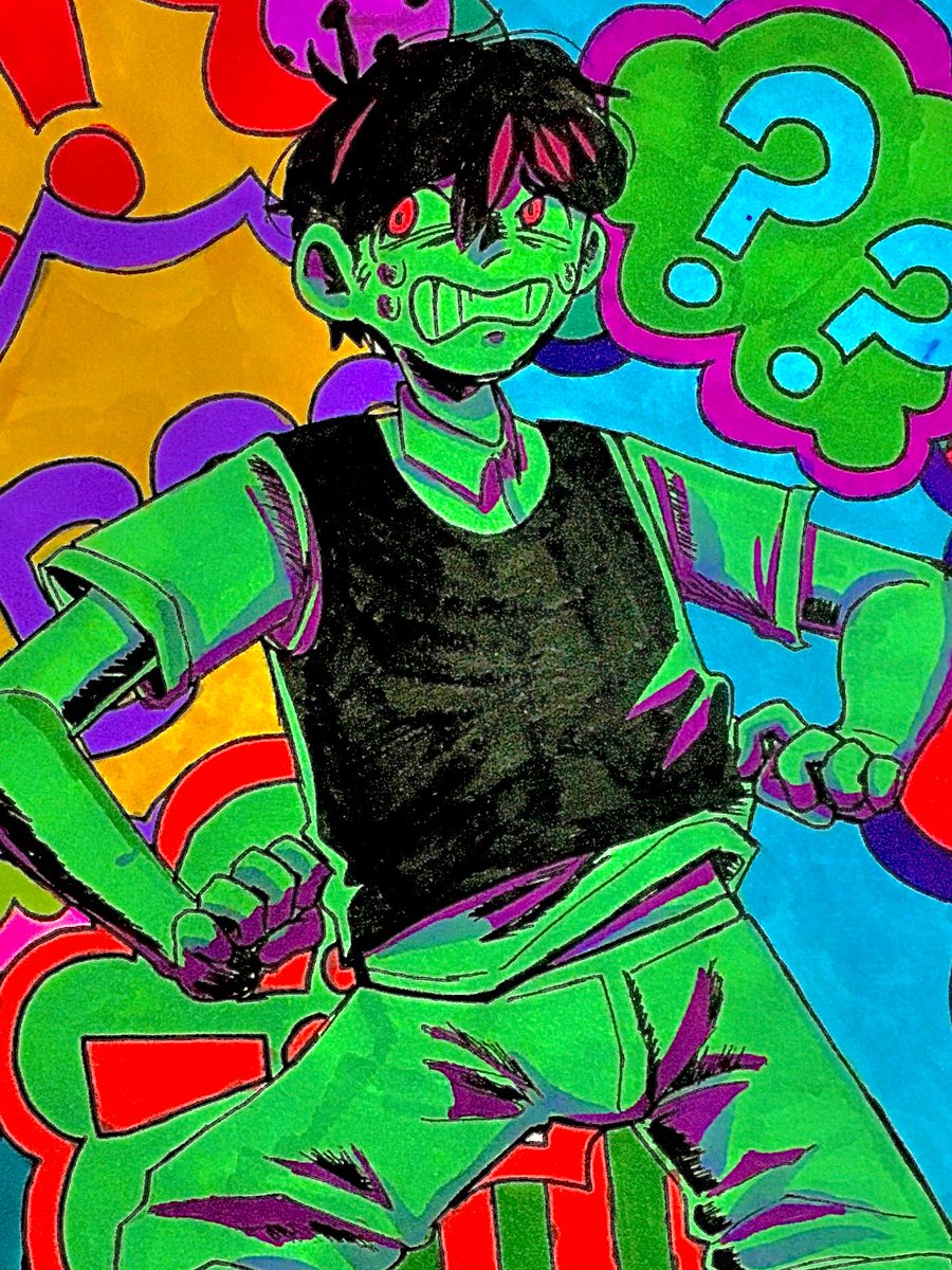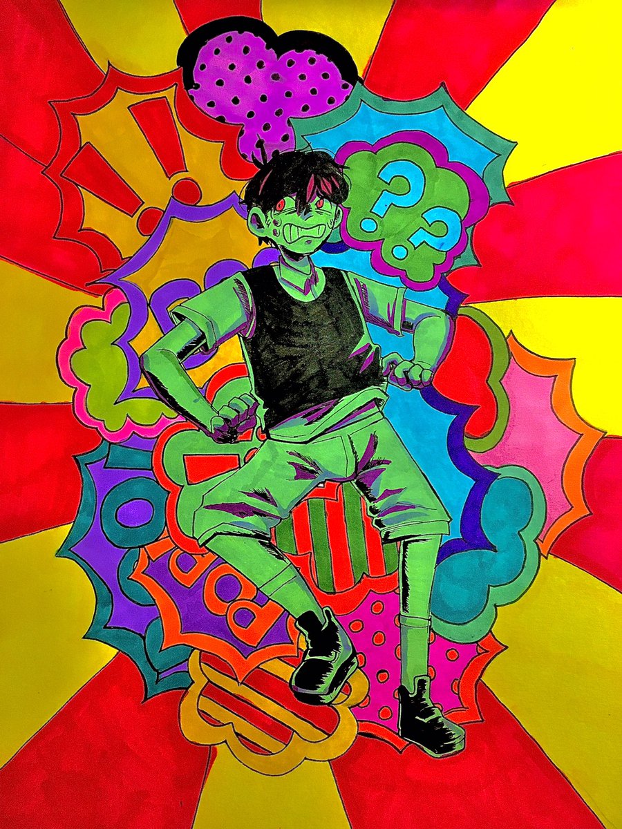 ‼️BRIGHT COLORS‼️ • • Art class work I did of Sunny based on pop art or something, idk RTs are well appreciated! • #OMORI #OMORIFANART #art #omoritwt #traditionalart #sunnyomori