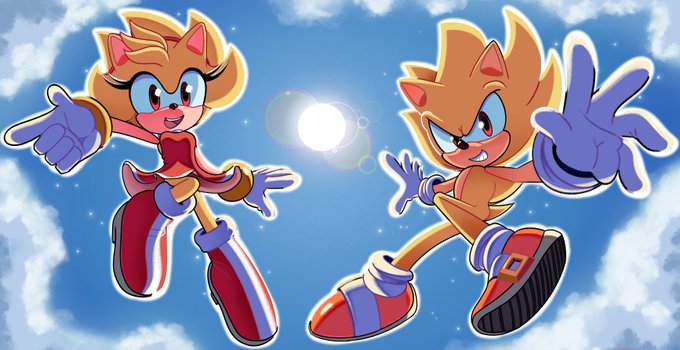 a commission of #SuperSonic and #SuperTails <3 #SonicTheHedgehog #Sonic #SonicFanart #MilesTailsPrower