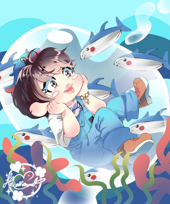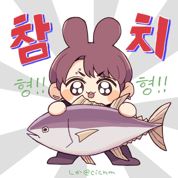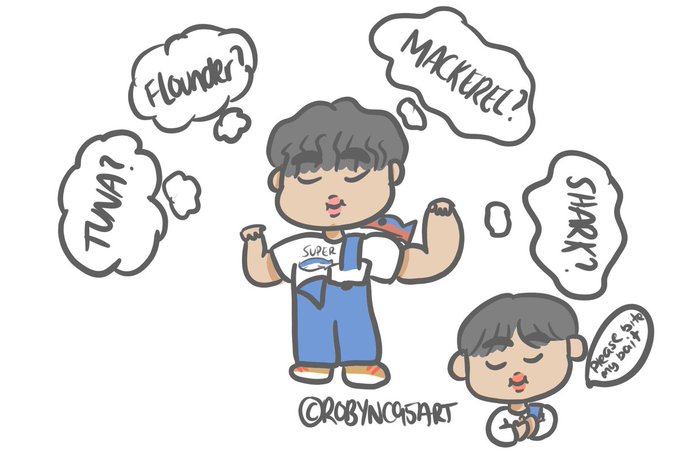 I don't mind if it's tuna, if it's flatfish, if it's mackerel, if it's a shark, please bite my rod's bait! @BTS_twt #BTS #JIN #btsfanart #btsart #btsdrawing #btschibi #chibiart #cutechibi #chibicute #chibiillustration #chibistyle #supertuna