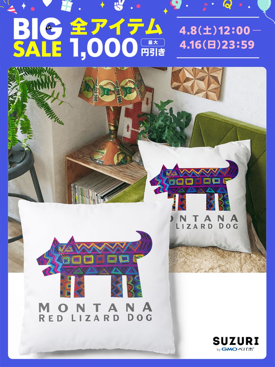 #suzuriのビッグセール 開催中です 4月16日(日)まで✨ 🐕「モンタナ・レッド・リザード・ドッグ」クッション suzuri.jp/ChitoseGraphic… 新生活のインテリアにどうぞ~🐕 ⚙他にもいろいろ suzuri.jp/ChitoseGraphic… #suzuri #suzuriで販売中 #動物 #カラフル #ポップアート twitter.com/suzurijp/statu…