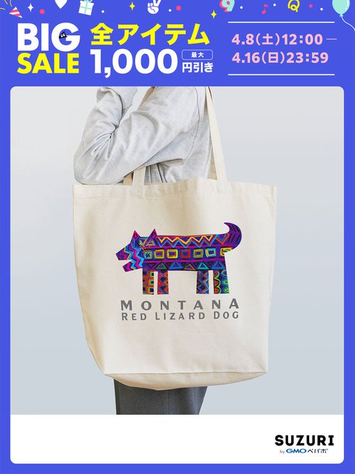 #suzuriのビッグセール 開催中です 4月16日(日)まで✨ 🐕「モンタナ・レッド・リザード・ドッグ」トートバッグ-Lサイズ suzuri.jp/ChitoseGraphic… 大容量で通学にぴったり😀 スケッチブックも入るしね🎨 ⚙他にもいろいろ suzuri.jp/ChitoseGraphic… #suzuri #suzuriで販売中 #カラフル #ポップアート twitter.com/suzurijp/statu…