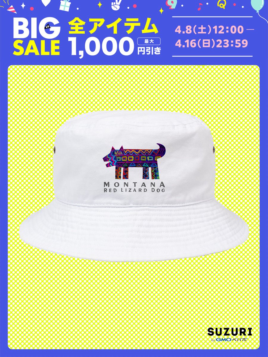 #suzuriのビッグセール 開催中です 4月16日(日)まで✨ 🐕「モンタナ・レッド・リザード・ドッグ」バケットハット suzuri.jp/ChitoseGraphic… フェスのお供にどうぞ🤗 ⚙他にもいろいろ suzuri.jp/ChitoseGraphic… #suzuri #suzuriで販売中 #動物 #カラフル #ポップアート twitter.com/suzurijp/statu…