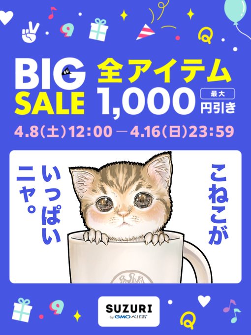 #SUZURIのビッグセール 2023.4.8(土)12:00~2023.4.16(日)23:59 全アイテム最大1000円引き! nya-mewもよろしくね suzuri.jp/nya-mew #猫 #子猫 #絵描きさんと繋がりたい twitter.com/suzurijp/statu…