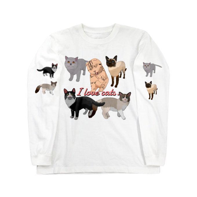 どのにゃんこが好きー? にゃんこ大集合のデザインを作りました😊 明日からセール始まるよー!😆 I love cats. / ヘンテコデザイン専門店 SYUNLABO ( SYUN_SYUN ) のロングスリーブTシャツ販売 #suzuri suzuri.jp/SYUN_SYUN/1223… #猫 #猫好きな人と繋がりたい #SUZURIの週末限定セール #イラスト