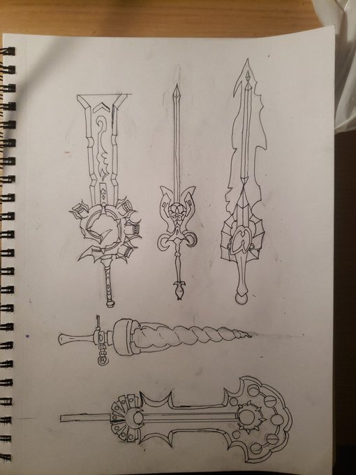 just designing a sword! My dnd character Eldaine is proficient in Smiths Tools and Arcana so she often makes magic items for her party! This is her design of a flametongue greatsword! #sword #swordtember #weapondesign #conceptart #dndart