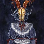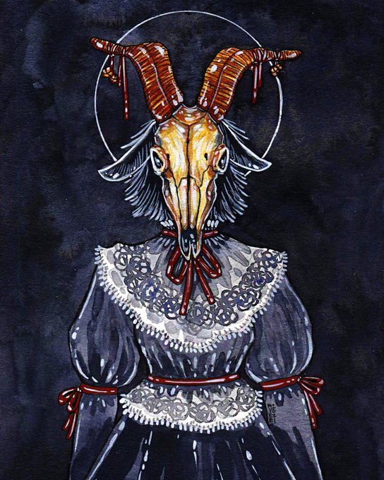 Prompt 5 : Goat Witch 🐐 for @heatherlime’s #HMYuleWitches21 art challenge! • #art #illustration #painting #watercolor #gouache #witch #goat #goatwitch #goatskull #bones #death #sabbath #occult #horror #horrorart #victorian #gothic #goth #lolita #winter #yule #heathermahlerart