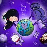 the earth loves you, little astronaut 💜 hope you always remember that. #SeeYouSoonJin #SafeFlightOurAstronaut #WeLoveYouJin