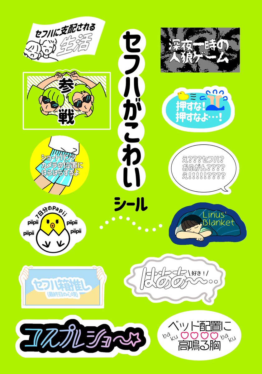 某所でアップしてたネップリです!饅頭怖い的な感じでセフハがこわい…‼︎(楽しみです、有難うございます) 今日から一週間お祭りだ〜‼︎ #OffGunfanart #SafeHouseSs3
