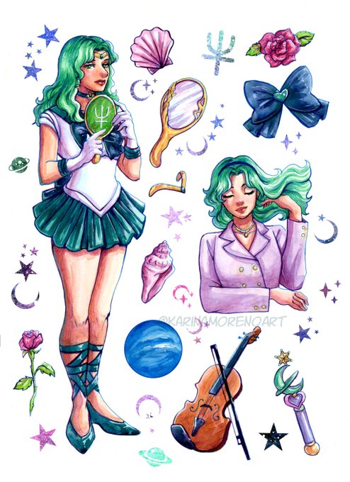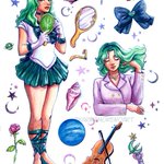 She is one of my favorites sailors 💚 I present to you... Sailor Neptune! It had been a long time since I painted in this style and I wanted to do it again, I hope you like it 🥰 #SailorNeptune #SailorMoon #FanArt