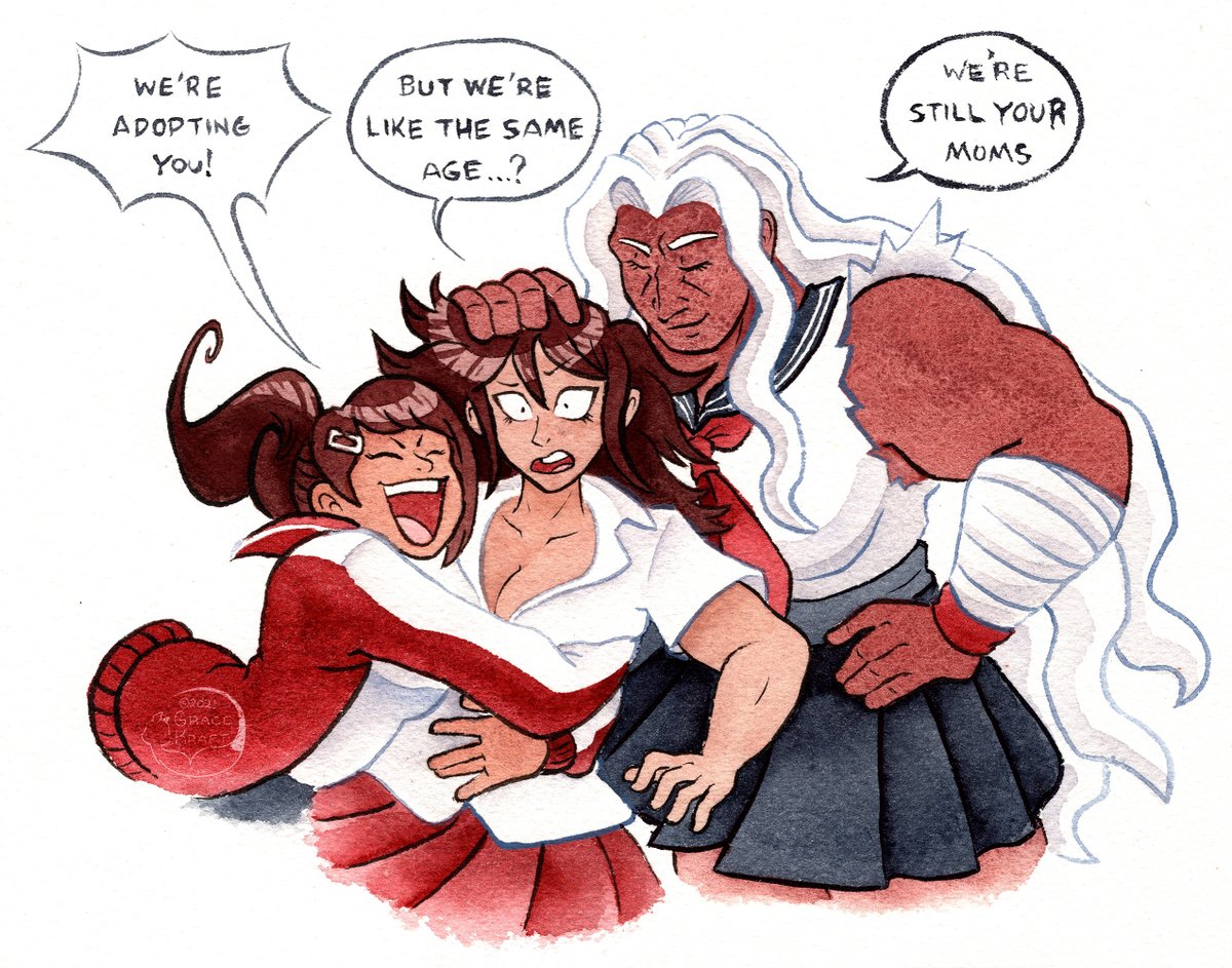 Inspired by this clip from @ProZDPlaysGames from the DR2 playthrough: youtube.com/clip/UgkxDTIGy… I also always thought Akane looked like she could be Sakura and Aoi's daughter. #sakuraoi #sakuraogami #aoiasahina #akaneowari #danganronpa