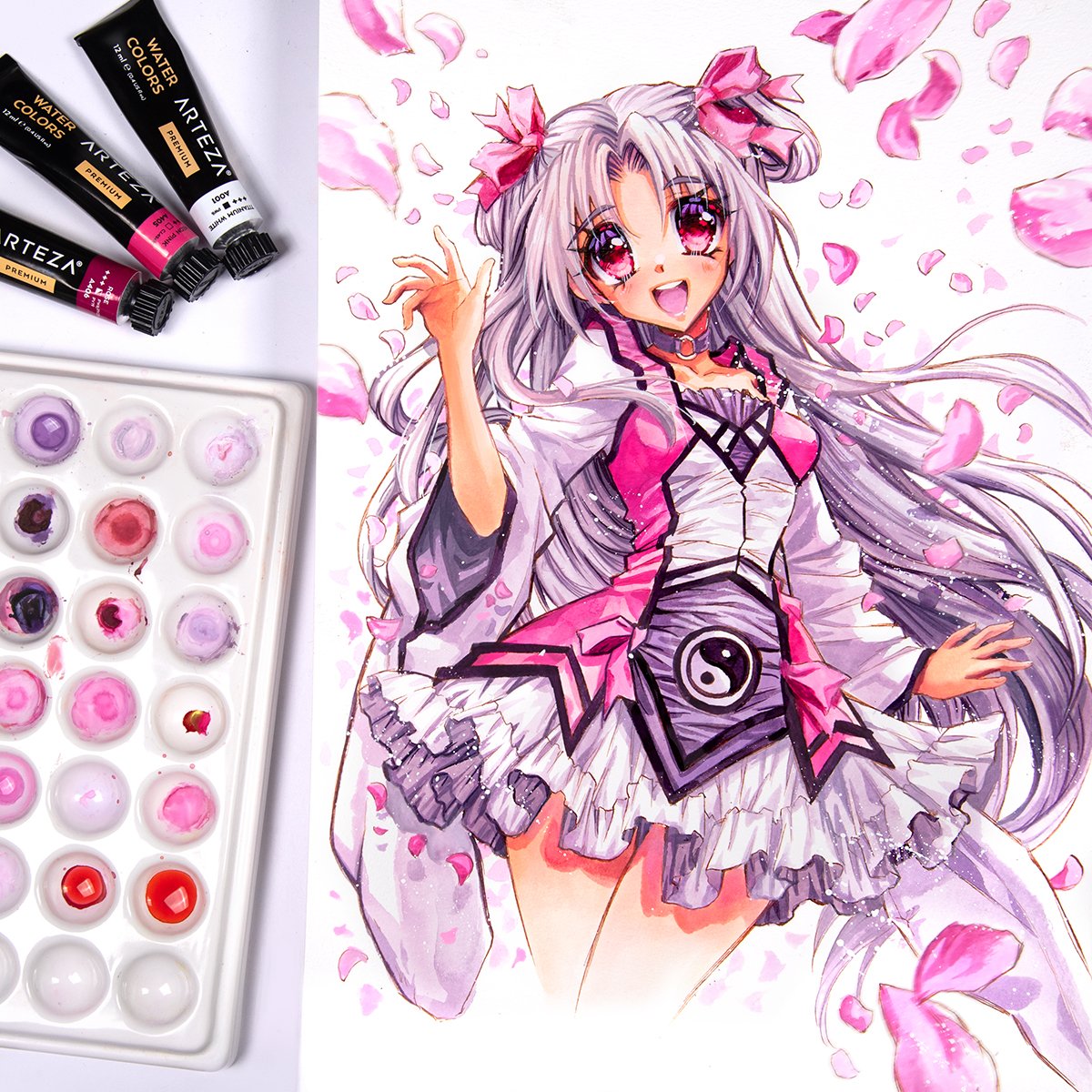 🌸🌸Sakura with Gouache and Watercolors 🌸🌸 Do you remember the Manga Sakura Hime Kaden? Thank you so much @arinacchi Sensei for creating this beautiful character and Manga 💖💖💖 #sakurahime #sakurahimekaden #arinatanemura #cute #kawaii #manga #mangacoloring