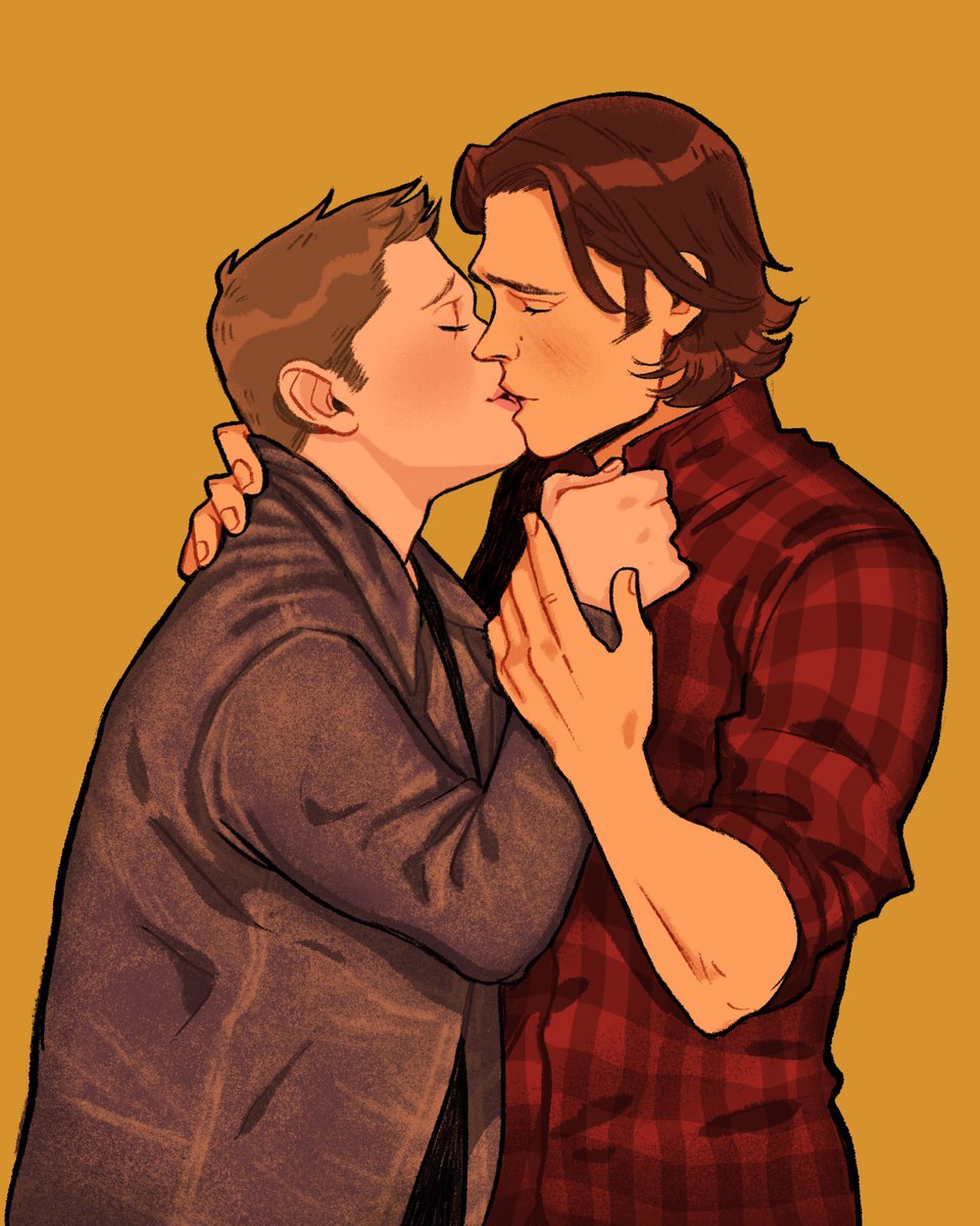 trying to... simplify my art style even further because i got bad hand cramps lately from going back to my old drawing tablet #castiel #jackkline #samwinchester #spnfanart
