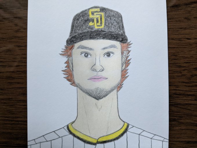 ダルビッシュ有さん描いてみた♪ #ダルビッシュ有 #yudarvish #sandiegopadres #落書き #イラスト #アナログイラスト #色鉛筆 #アナログ絵 #手描きイラスト #似顔絵 #illustraion