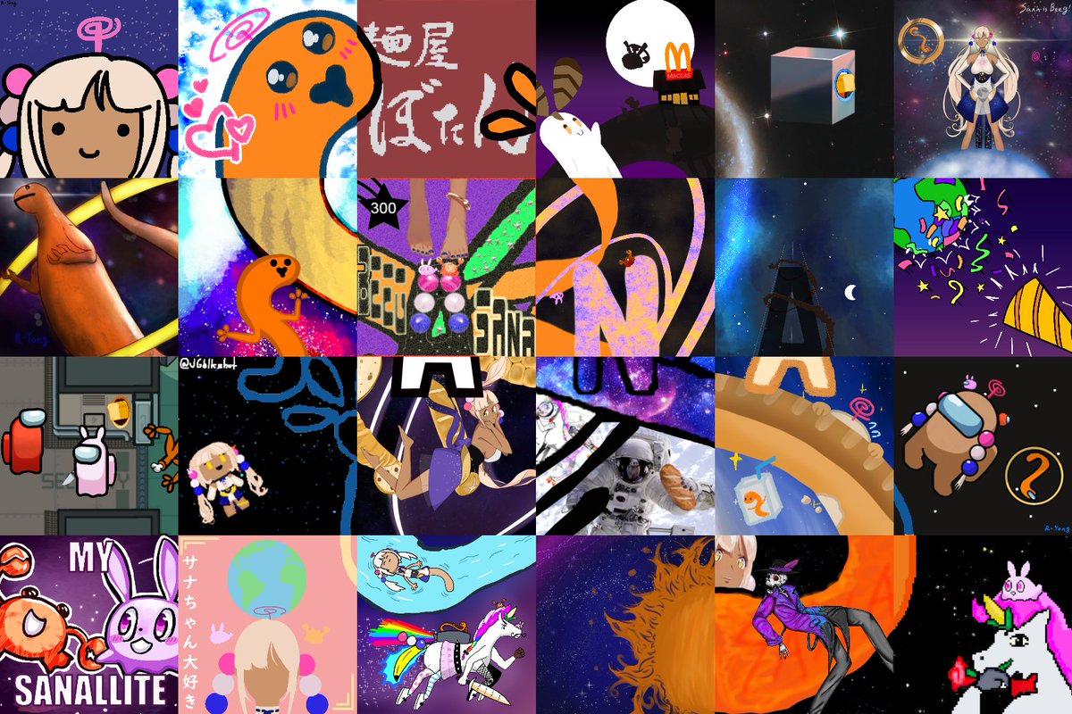 So these are my pieces of the quilt, I'm not good but feel very happy when drawing 😂 Hope you like it🧡#galaxillust #SanaIsLimitless #SanaLanding twitter.com/Green3448674…