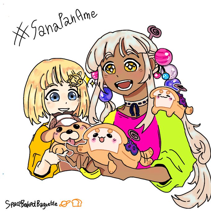 I drew- or should I say I baked Ame pan and Sana pan for the collab. Also with the colored version 🍵 #SanaPanAme #ameliaRT #galaxillust