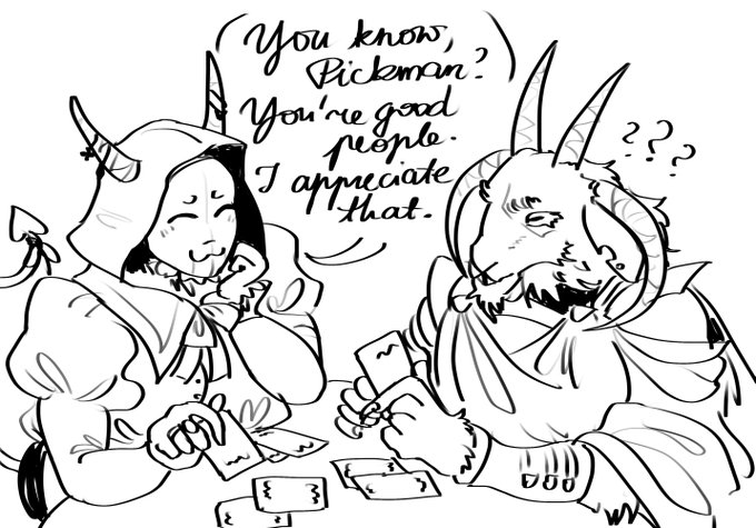 happy late #secretsamol @fentonstdtss! katonya and pickman kicking back and taking a break from life~ 🐂🐐#friendsatthetable #sangfielle