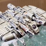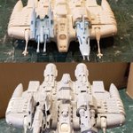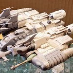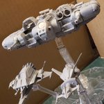 リアベ号、チビチビと整えてます。アロン号の裏面作りました。画面撮と図面からこんな感じかなと。本体アームの上面もキットより長いようなので延長。アーム脇部分は成形都合でディテールないので彫り起こし。シロー号は機体各所を整面したり。#リアベ号 #宇宙からのメッセージ #Sankuokai