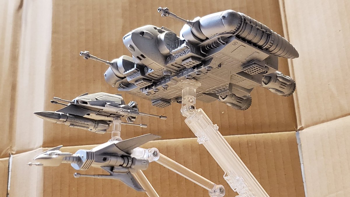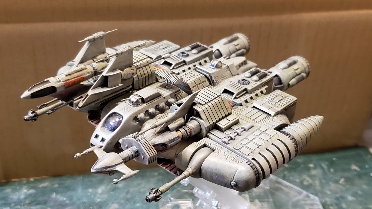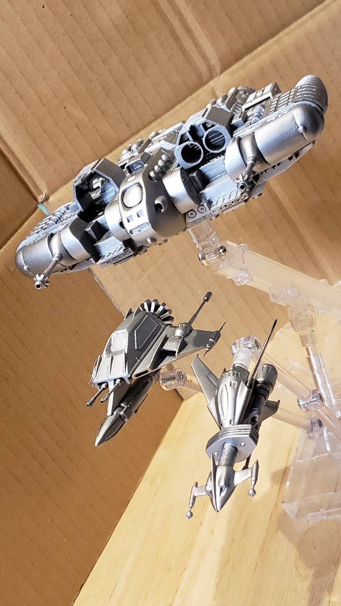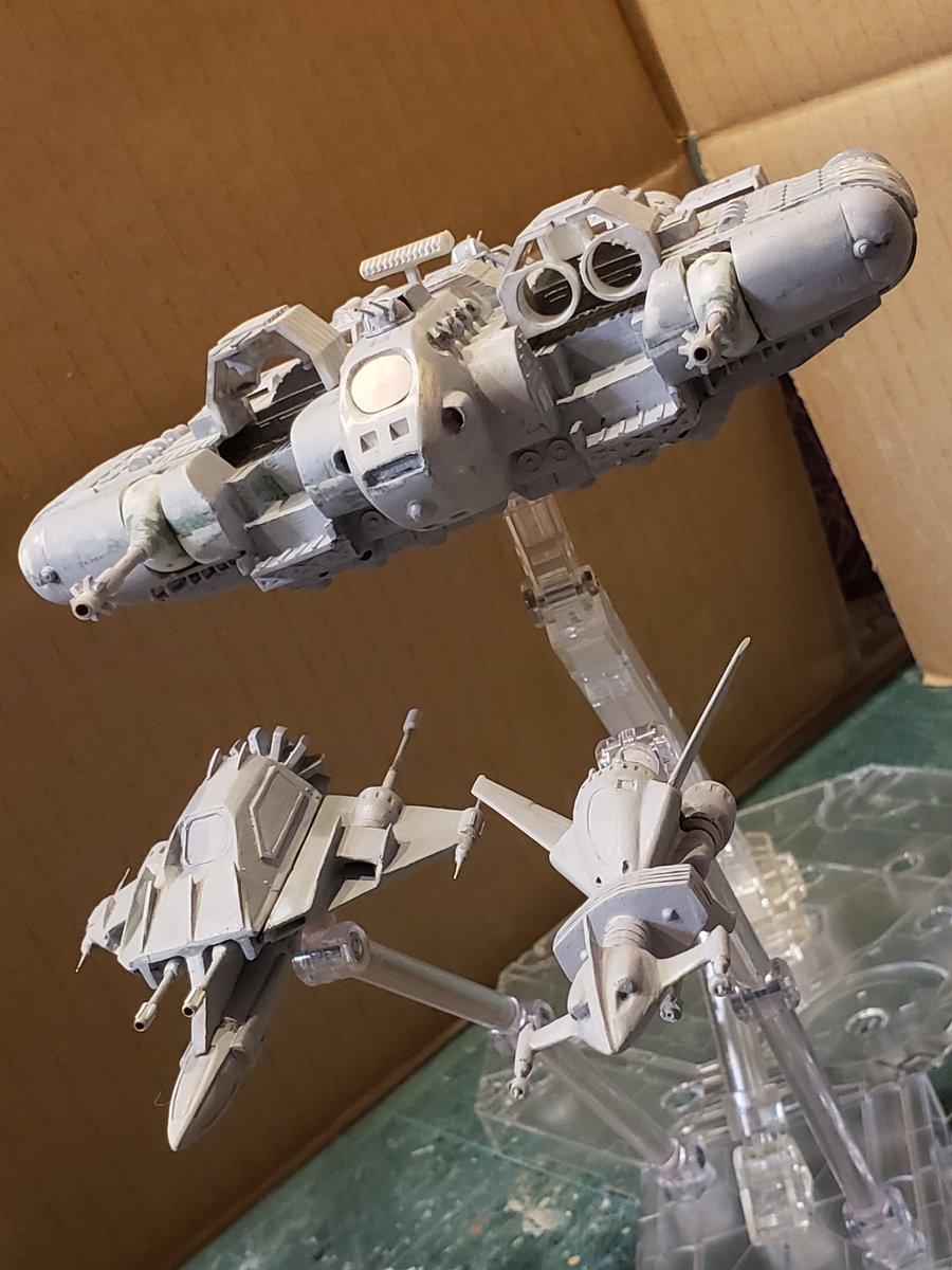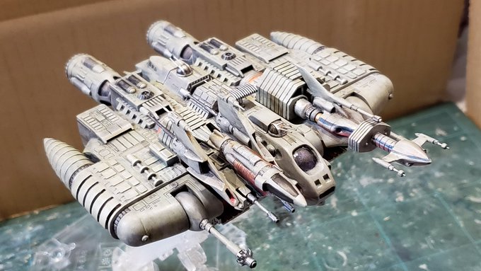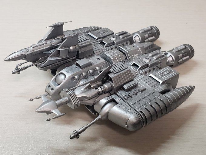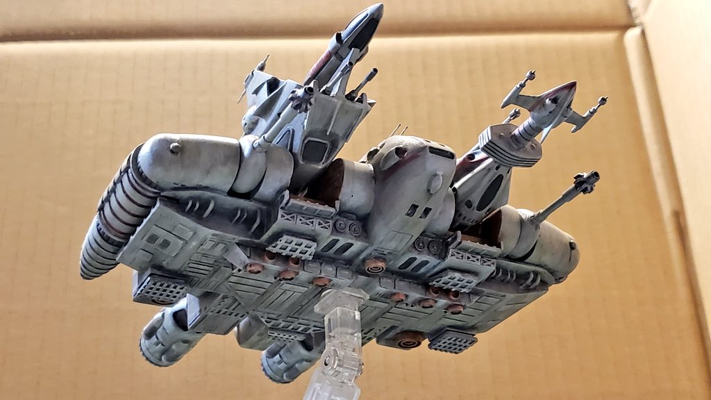 リアベ号進捗ー。表面処理多少残してますが、可能な限りの修正、ディテールもほぼ入りました。再現されてない下面もしっかり拾ってます!しかし不思議な形の宇宙船だけどかっこいいんだよなぁ。。 #リアベ号 #リアベスペシャル #宇宙からのメッセージ #Sankuokai
