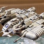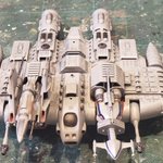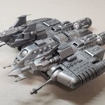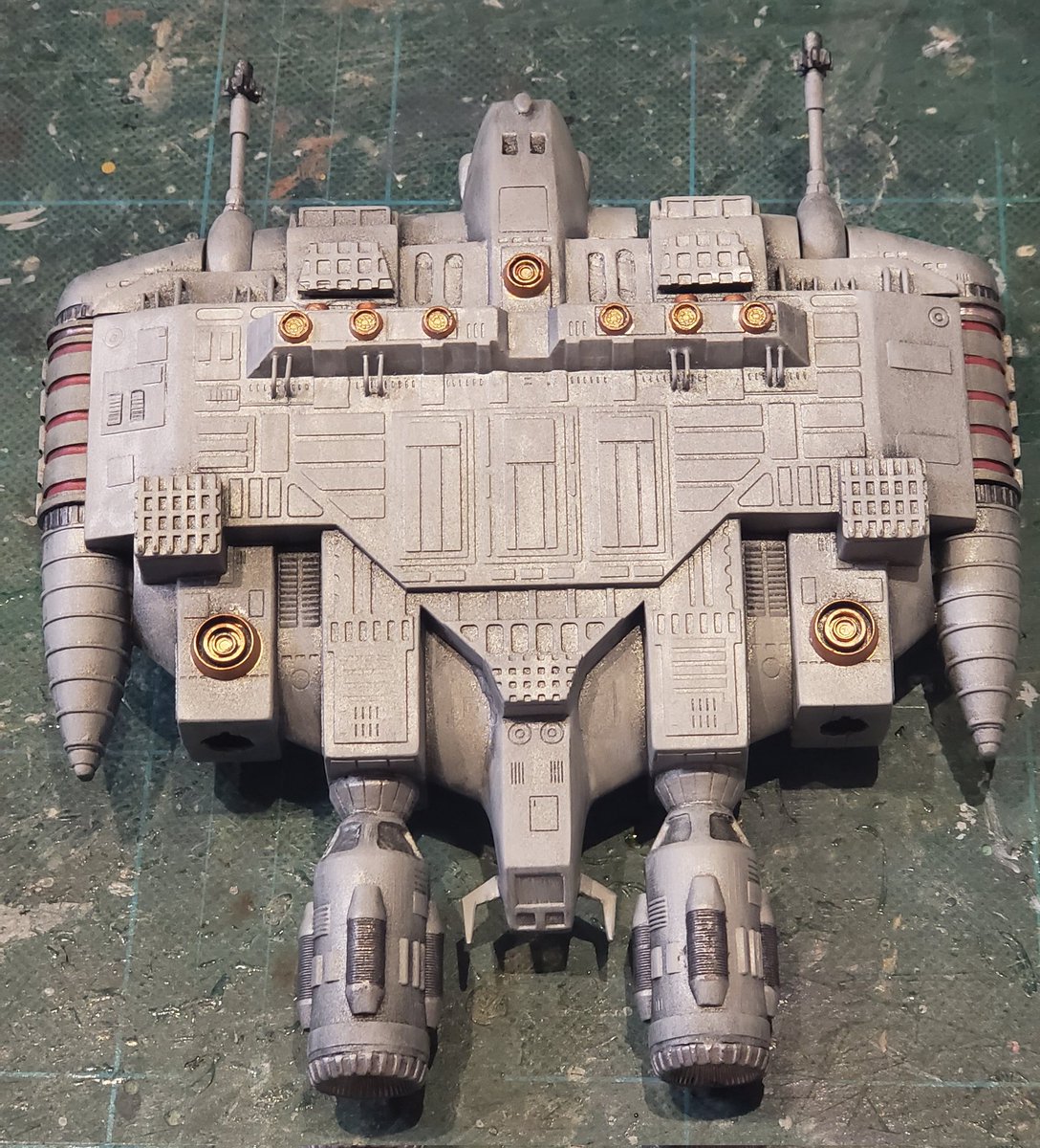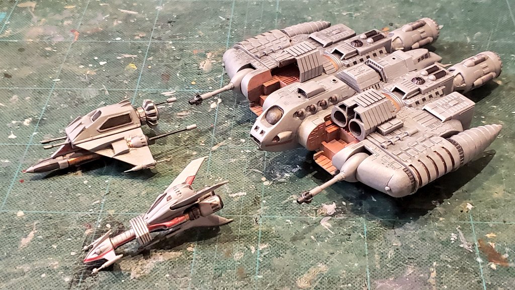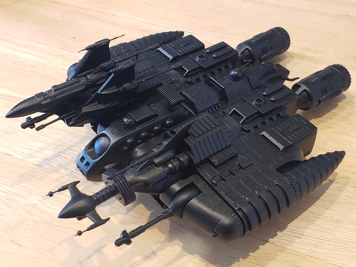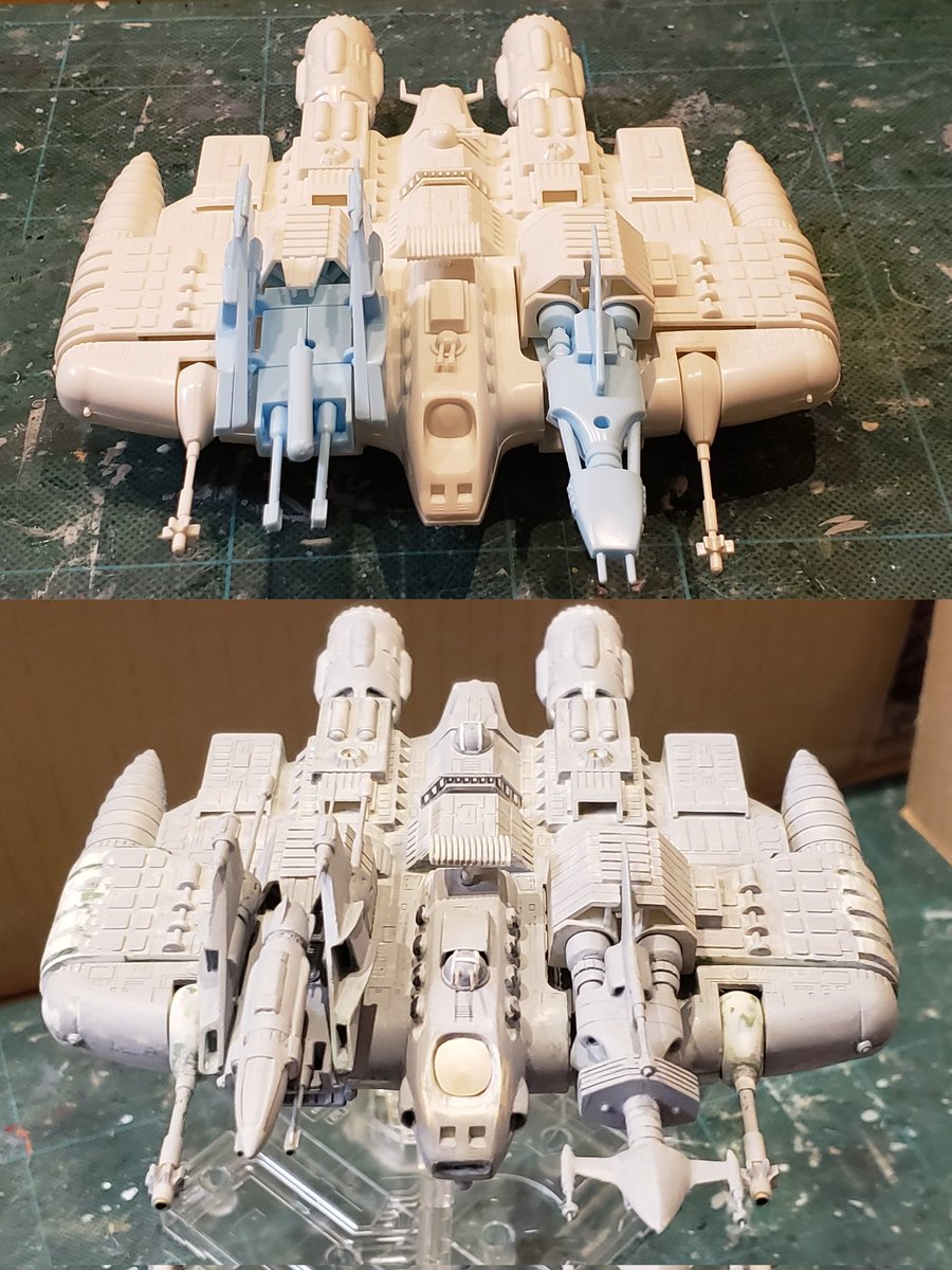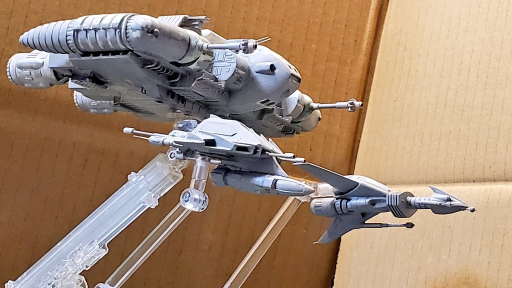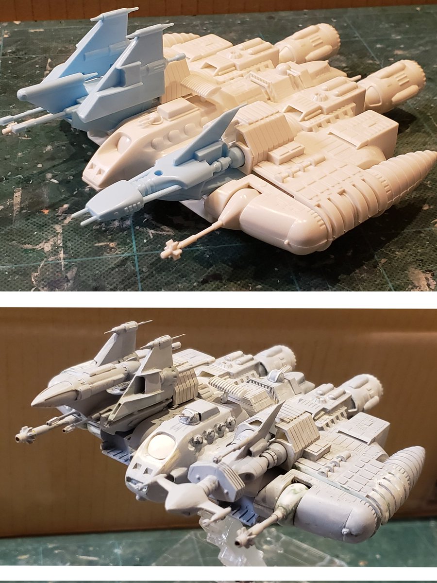 リアベ号進捗ー。表面処理をちびちび進めつつ。シロー号とアロン号の小さい飾り翼をつけました。これで大まかな形はでたかな。リアベ号の前面下面のディテールアップはまだまだです😓 #リアベ号 #宇宙からのメッセージ #Sankuokai
